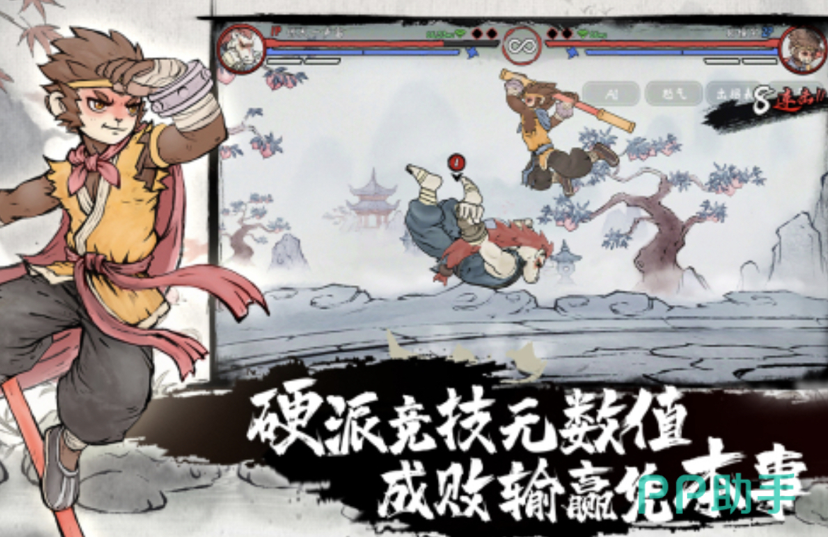 带有中式审美的水墨画风中,各路武侠在横版2d中进行格斗,武侠形象塑造的灵感来自于名著西游记,角色身型比例和性格还原度较高,各种造型也是随时更新。每个门派的竞技没有具体数值显示,真功夫才是唯一的取胜真理,每个英雄的大招都有与之相克的招数,所以对抗性是游戏的乐趣之一。在即时格斗中,竞技更加激烈。