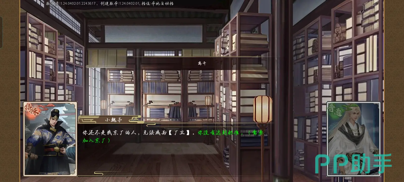 大家想加入锦衣卫的话需要先完成一定的条件,比如需要先把自己在东厂的威望提升到2000点。这里的东厂威望并不是大家可以在武侠县里看见的东厂声望,所以不要搞错了,是另外一个独立的系统。