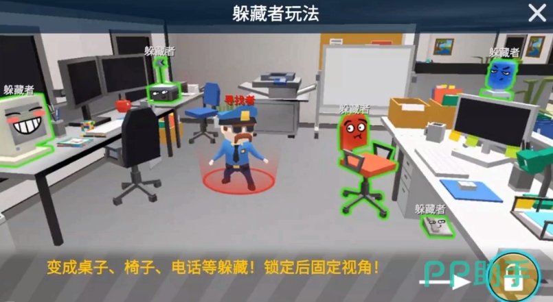 而作为寻找者,玩家的核心任务是识别并捕捉躲藏者,他们可以通过点击任何看起来可疑的地方来尝试找出躲藏者,而且寻找者身上还装备了武器,可以近距离抓捕,或者使用枪击道具进行远程抓捕,设定当中是要求大家必须在200秒的时间限制内找到所有躲藏的玩家,所以也是需要抓紧时间的。