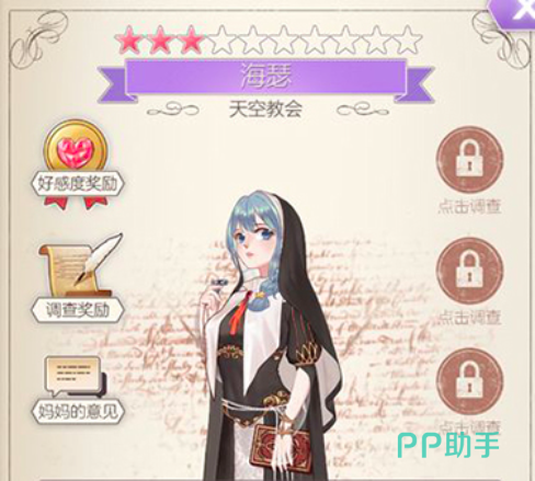 螺旋圆舞曲海瑟这个角色是天空教会侍奉女神的祭司。她从六岁就来到了天空教会,至此并没有什么家人,在这个游戏当中是一个必不可缺的角色,玩家需要获得他的认可和好感才能够解锁更多有用的剧情和信息。其实想要获得该人物的好感并不难,只需要了解一下相应的剧情问答以及她的属性爱好即可快速攻略她。
