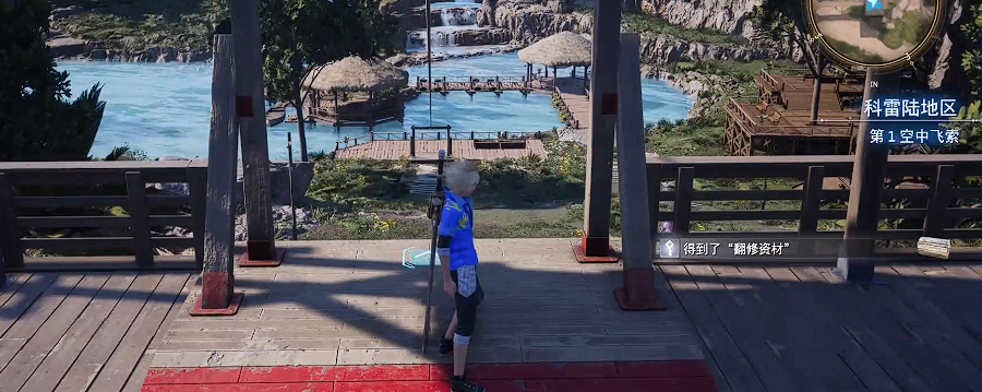 我们先要来到福尔斯海岸找到乔尼,他会要求你去8处空中飞索拿物品。这些物品都会在每个空中飞索往下起跳的地方找到。具体的飞索位置分布在科雷陆地区的不同角落,包括海风的港湾仓库附近高处的宝箱,日出山崖瀑布上面的宝箱,以及爱之岬的栈桥下面的宝箱。玩家需要利用游戏中的爬墙和跳跃机制,才能到达这些通常不易察觉的地方。