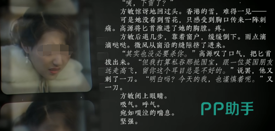 在看完这第二个结局后,就要来带大家看最后一个结局也就是隐藏结局了,这个隐藏结局是一个he结局,这个he结局中她会被成为国名党高管的肖途批为汉奸,不过后来肖途迷途知返,给方敏救了出来,让方敏成功脱身活了下来。