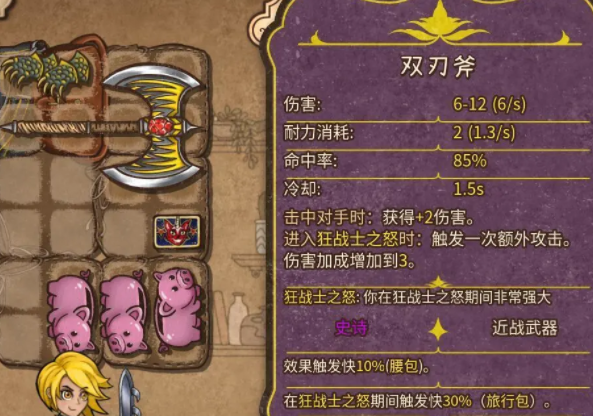 背包乱斗中职业众多,玩家可以根据自己喜欢的职业来操作,通过选择自己所选的职业的相关流派来进行对战,其中背包乱斗双刃斧狂战士怎么玩?在众多职业中,狂战士有着不俗的实力,玩家需要将强力的道具摆放在自己有限的背包中来增加自己的伤害从而更好的战胜对手。现在小编就来介绍一下。