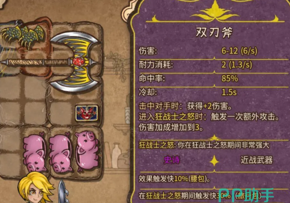 背包乱斗中双刃斧狂战士作为狂战士的一种玩法还是十分强势的,玩家主要的核心思路就是拿到双刃斧后通过镶嵌宝石来增加自己的伤害。同时利用锻造锤锻造龙鳞套增加属性。对于喜欢狂战士这一职业的小伙伴们来说,这套双刃斧玩法既简单又有趣,不需要特别多的运营即可获得强力效果,实在是上分必选之流派。
