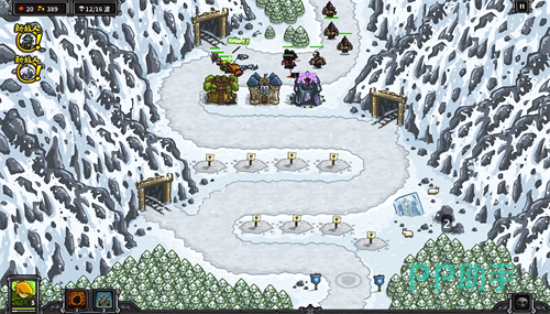 第二关:与第一关相似,只有一个路口。在转弯处合理布置小兵和后排炮塔是关键。及时使用佣兵进行支援,并记得给炮塔升级,增加杀伤范围和威力。