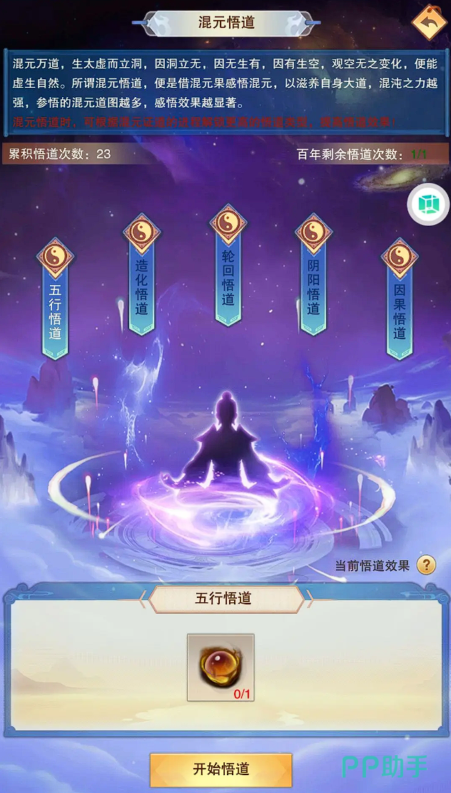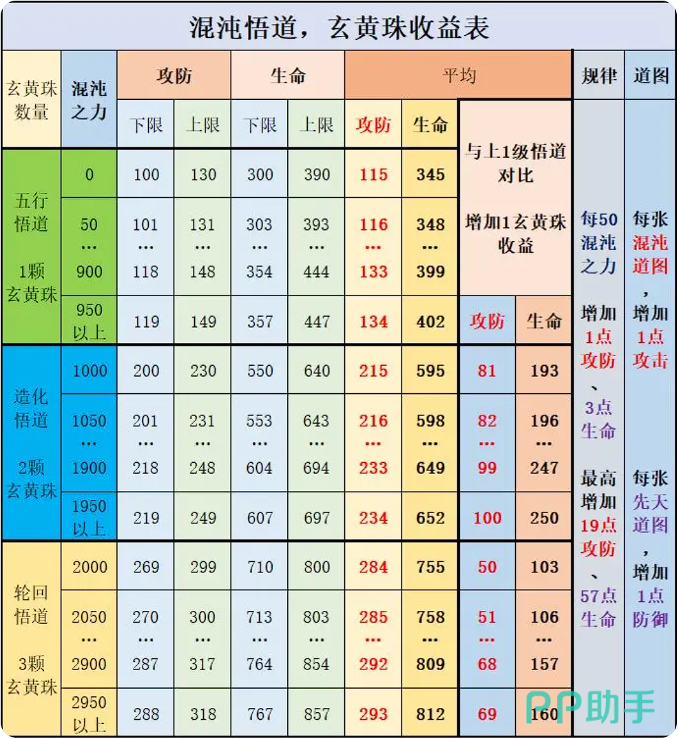 玄黄珠在游戏中主要用于混元悟道,通过消耗玄黄珠,玩家可以获得攻击、防御和生命值的提升。而五行悟道可以获得混沌之力、混沌道图、先天道图带来的所有收益,这相当于是第1颗玄黄珠的收益。造化悟道和轮回悟道则分别在五行悟道的基础上增加了更多的属性值。