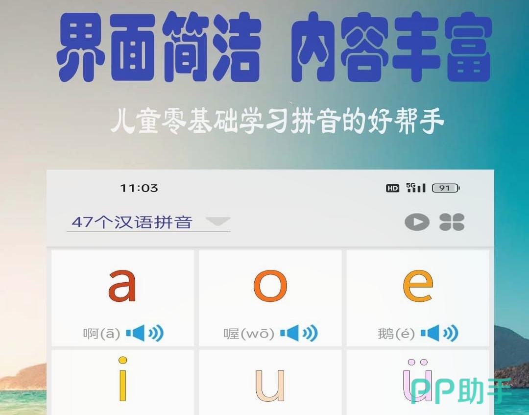 没有基础的成年人非常适合使用这一软件,它没有复杂的功能,其中可爱的图片配上大大的拼音可以强化各位对于拼音的记忆,应用里的每一个课本都有着详细的拼音认读。