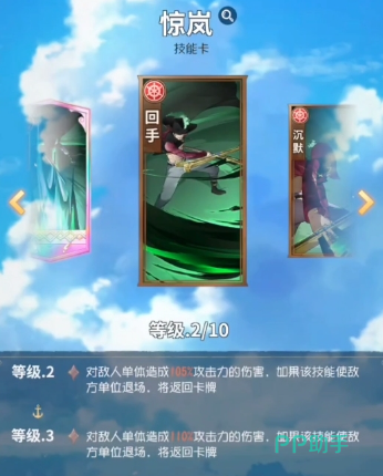“惊岚”是一个主动技能,一旦在释放之后就可以针对敌人造成强势的单体伤害,一旦在打败敌人之后,这张卡同样还会在玩家的手中,这就说明下一个回合照样可以使用,很适合用来收拾敌人的残血。