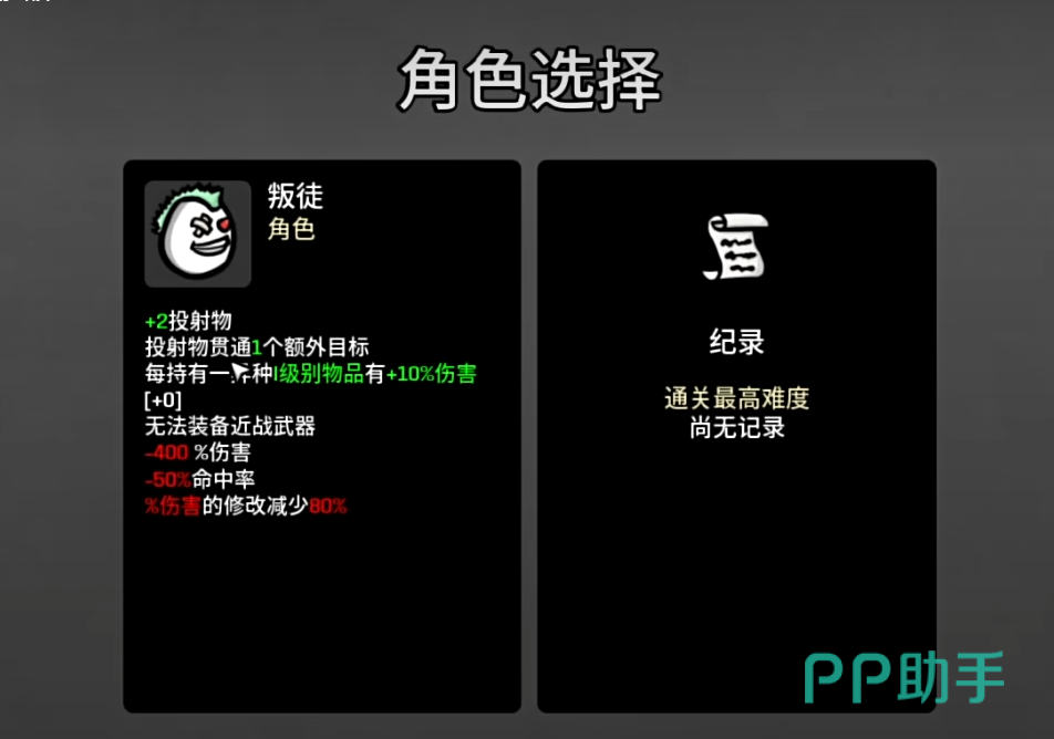 但叛徒自身也是有着短板的,首先他无法装备近战武器。并且会减少400%的伤害,-50%的命中。这两个都可以通过强化人物来获取减低。总的来说是使用起来优点和限制都非常大的一位角色。