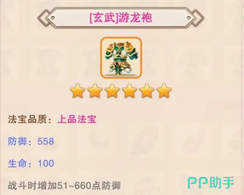 玄武八卦袍的制造方法,可以通过三瓶醉仙酿从宗门宝库中换取,不过不要忘记制作玄武八卦袍还有其他的所需材料,包括玄武游龙袍1件、八卦袍1件以及金岭砂500颗。