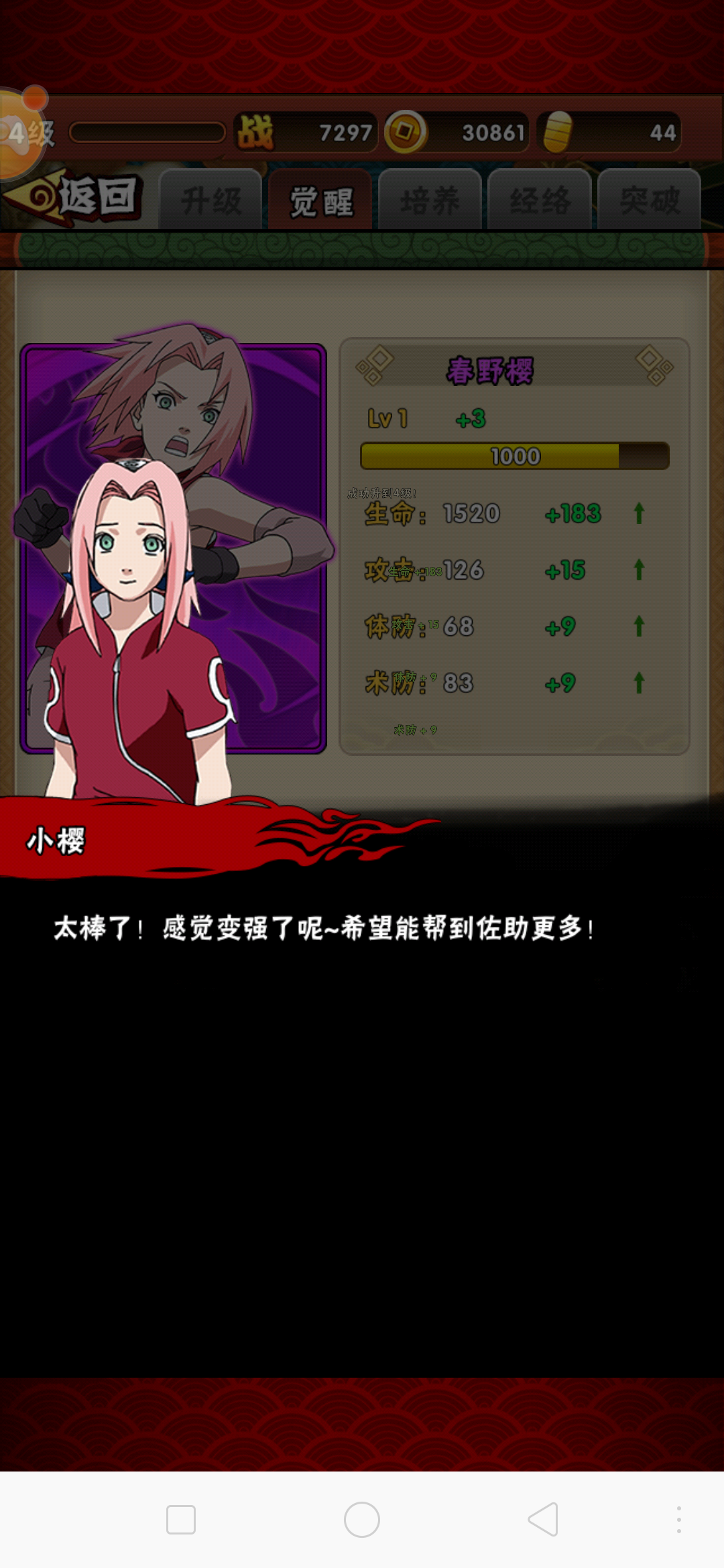 火影忍者-忍者大师作为抽卡类手游APP,玩家可以通过抽卡召唤火影忍者中大量经典的角色(自来也、大蛇丸、宇智波斑等)。通过日常的升级、强化装备、觉醒进阶,为自己的忍者冒险增加战斗力。玩家可以通过参与竞技场挑战和进行日常修行副本获取升级材料。