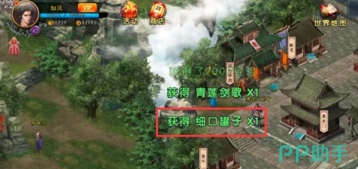 “细口罐子”这个道具的获取途径相对复杂一些,玩家需要前往成都场景的坐标【25,26】处找到小乞丐,先与小乞丐进行对话,然后靠近小乞丐后屏幕中会出现互动键,其中就有一个“施舍”的按钮,花费1000铜币施舍给小乞丐。一共需要重复施舍十次。十次过后再点击小乞丐进行对话,小乞丐就会让玩家尝试玩华容道游戏,如果你有把握就可以点击“愿意尝试”进入游戏,游戏成功完成后就会获得游戏道具“细口罐子”啦。