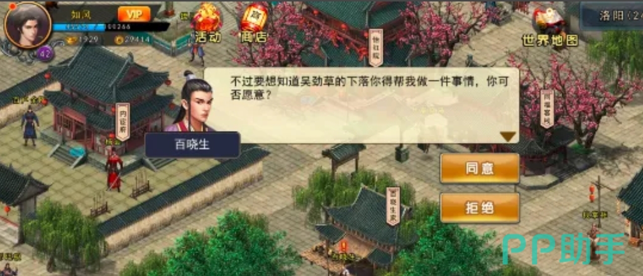 首先我们需要领取峨眉猴儿酒相关的任务——峨眉支线任务倚天剑。玩家先前往NPC百晓生处进行对话,百晓生会表示希望你帮他做一件事情,此时玩家需要点击“同意”,此时百晓生会要求玩家赠送他峨眉猴儿酒,这个时候玩家再次点击“同意”,就成功领取到了任务。