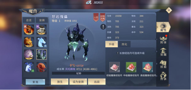 由于二代魔兽的资质远比一代高出许多,能够更好的提升玩家斗气,因此选择好符合要求的魔兽后,一定要进行魔兽繁殖。