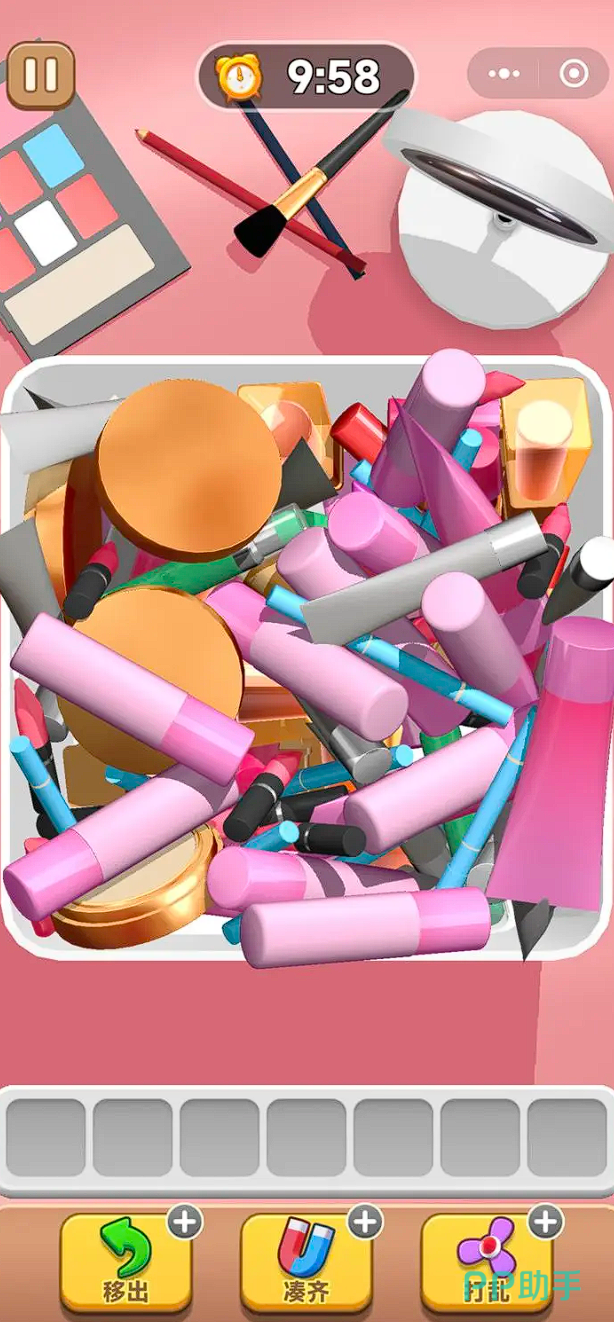 戏的主界面包括一个物品区域和一个道具栏。物品区域是游戏的主战场,玩家需要在这里进行物品的消除。道具栏则包含了几种不同的道具,这些道具可以帮助玩家在关卡中取得优势。有的道具可以用来移除单个难以匹配的物品,而另一些道具则可以用来打乱当前的物品布局,从而创造新的消除机会。而使用策略其实是比较简单的,前期不推荐大家使用道具,游戏中后期酌情使用。而且关卡后期大家就可以放手一搏了,这样的安排能保证大家节省资源,冲击更高分数。