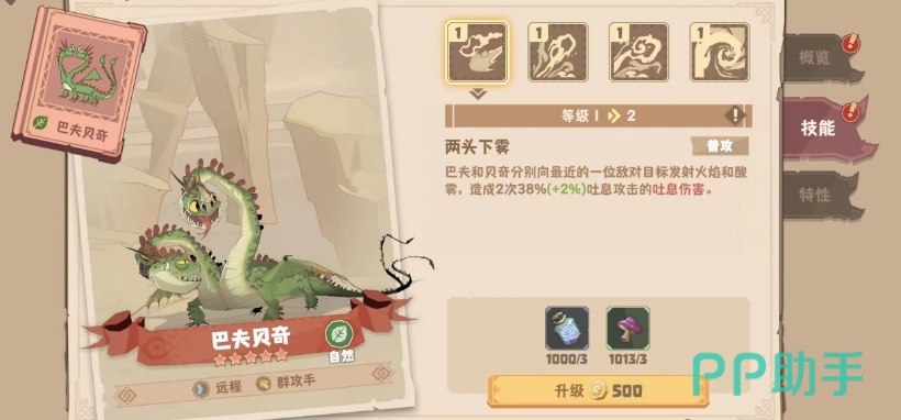 巴尔贝奇:这是一条奇幻纲中群攻能力非常强的龙,本身品质达到红色,也是有着超高的吐息攻击属性,普攻是两次38%吐息攻击的吐息伤害,一技能可以对范围内全体目标造成54%吐息伤害并施加六秒感染,感染期间会持续掉血。