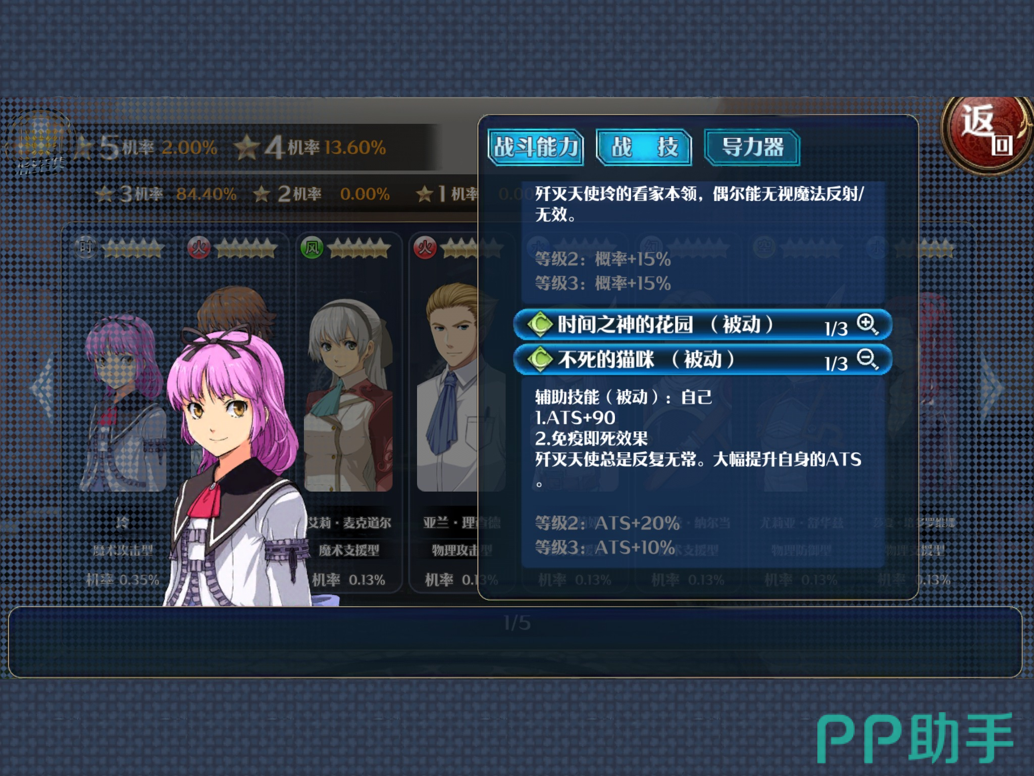 (1)技能等级:越到后期,技能等级的重要性就越大,玩家必须优先提升技能等级。由于「玲」是限定角色,提升技能等级比较困难,所以玩家最好使用「红猫」和「蓝猫」提升技能等级。