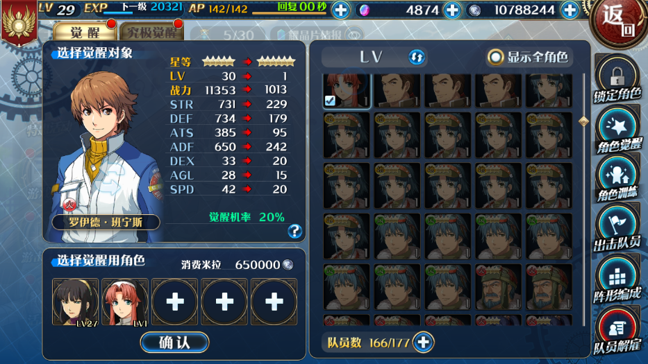 (1)觉醒角色:角色觉醒可以为玩家带来基础属性提升和属性成长提升(属性成长越高,每次角色升级时提升的属性越多)以及等级上限。一个角色后期可不可以用,一定要看他是否能够觉醒到六星,不然会比其他角色差很多属性。