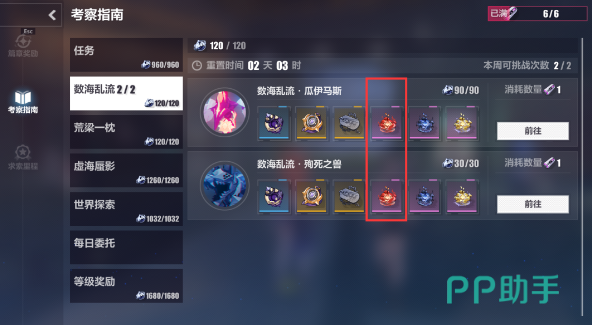 在这一个地图中主要是有效提升玩家的等级,当前的版本25是满级,等到等级足够之后就可以选择刷新的玩法。不过别忘记要准备所需要的“安禾辰砂”,这就是一个基础的货币,可以达到强化的效果。裂兆深流主要是用来去刷取仪器的建议在18级之后就可以打,基本上都能够出金。