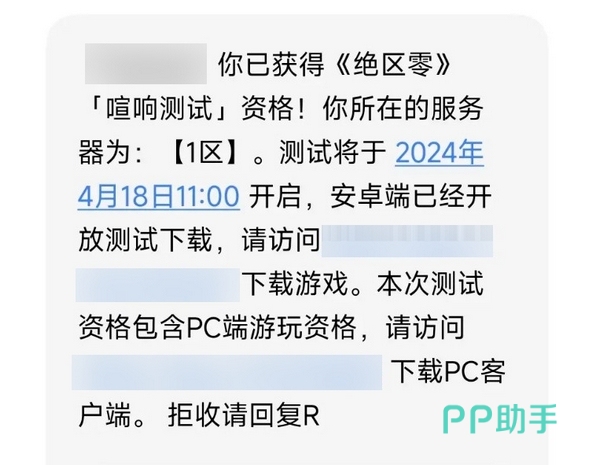 如果是之前参加问卷并拿到的资格,那么也会收到短信息提示,短信息中就包含了绝区零安卓版的下载链接,方便大家快捷获取客户端。同时这个游戏也是有pc端的,如果你觉得在安卓端上无法畅快体验更高画质和分辨率,那么去玩pc版也是不错的选择。
