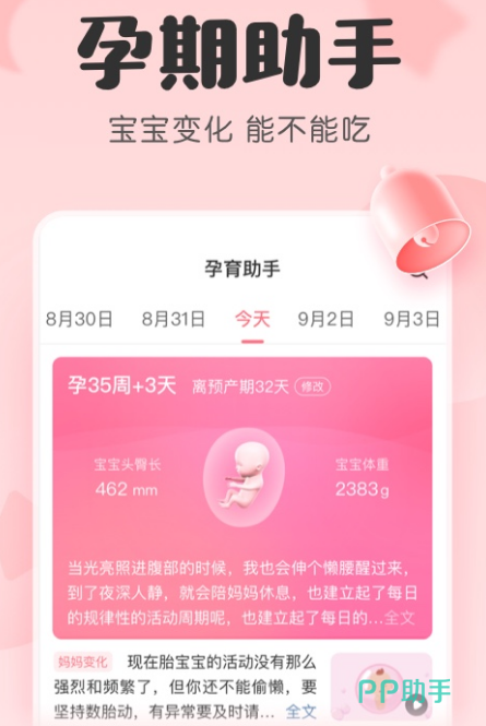 作为一款受到3亿女性同胞认可的软件,不仅可以帮你记录孕期宝宝在母体中的生长发育情况,还可帮助女性记录经期,有经期提醒模式,还有贴心的孕期提醒,记录宝宝的成长以及准妈妈该如何合理的搭配饮食、或者是怀孕的各个阶段准妈妈应该注意哪些问题,非常的详细助力您科学育儿,还可结识比较聊的来的准妈妈一起分享心事。
