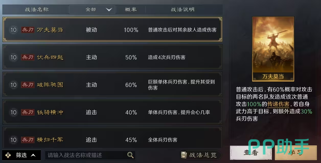 三国:谋定天下这款游戏里,战法就相当于武将的技能,只有战法足够给力,才能在搭配武器、韬略的情况下打出更好的战绩,而三国谋定天下战法升级怎么弄就是很多想让自己的战法在战场上有更强表现的朋友们想知道的,下面小编就给大家讲解一下战法的升级攻略,快点来看看吧!