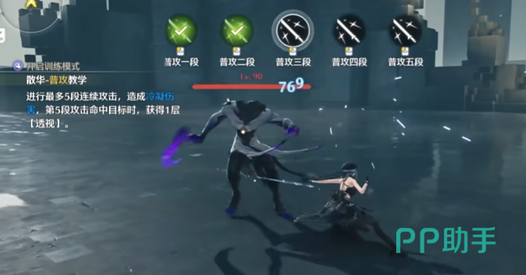散华,将战斗与QTE相结合的战斗方式,可以打出冰晶控制住敌人,是兼顾控制与输出的角色,单手剑操作起来也很帅。
