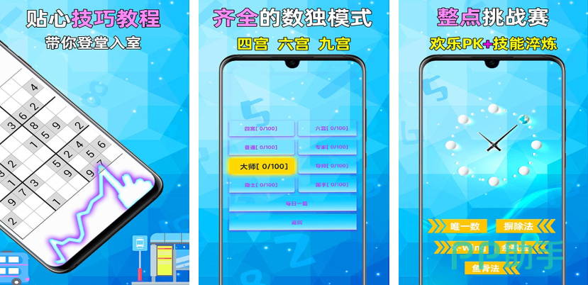 《全民数独》是一款拥有新手教学的速度要写游戏开篇会有一个30秒的视频教学,可以让不懂的玩家迅速了解其中的规则。游戏除了常见的九宫格以外,还有四宫格和六宫格两种入门级的玩法,比较适合小朋友玩。如果觉得自己玩没意思,还有欢乐pk模式可以挑战其他玩家。游戏中的题库也特别多,初级和赛级的全都有,且每个小时都会更新题图,想挑战自己的玩家可以下载。