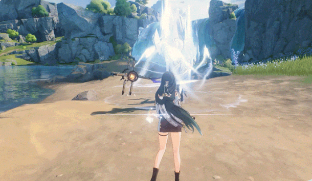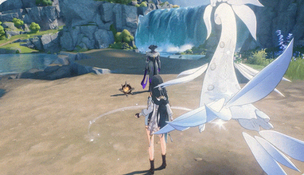 普攻的时候可以指挥身边的“忧昙”,也就是那个和鸟很像的伙伴,对敌人进行至多四段的连续攻击,并且打出冷凝伤害。重击的时候需要持续消耗耐力,可以牵引着忧昙不断旋转着攻击周围的目标,让敌人遭受较大伤害。
