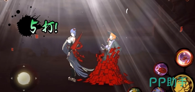 不同形态下点击奥义的效果也不一样,鹤形态点击奥义会释放式纸之舞·蔽日,动画表现为纸张缓缓遮住天空,场景变暗,蝶形态点击奥义则会释放式纸之舞·破晓,动画表现为纸张被收回恢复明亮。