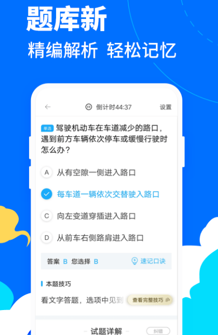 作为一款考摩托车证必备的软件,是很多小伙伴都非常熟悉的,该软件为考摩托车证的人群提供了一站式的服务,拥有全新的题库,也会实时更新,具备了大数据智能筛选的必做题,可轻松地通过理论考试。在该软件上学习,即使是后期上路练习,也有很大的帮助。