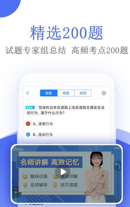 该软件是通过4个方面来快速地助力用户通过摩托车考试,比如有图片展示、还具备了语音讲解以及视频演试和提炼口诀等方法。快速的帮您通过科目一到科目四的考试。有理论知识的解析、也有科目二、科目三高清视频教学讲解,是一款贴心的软件。