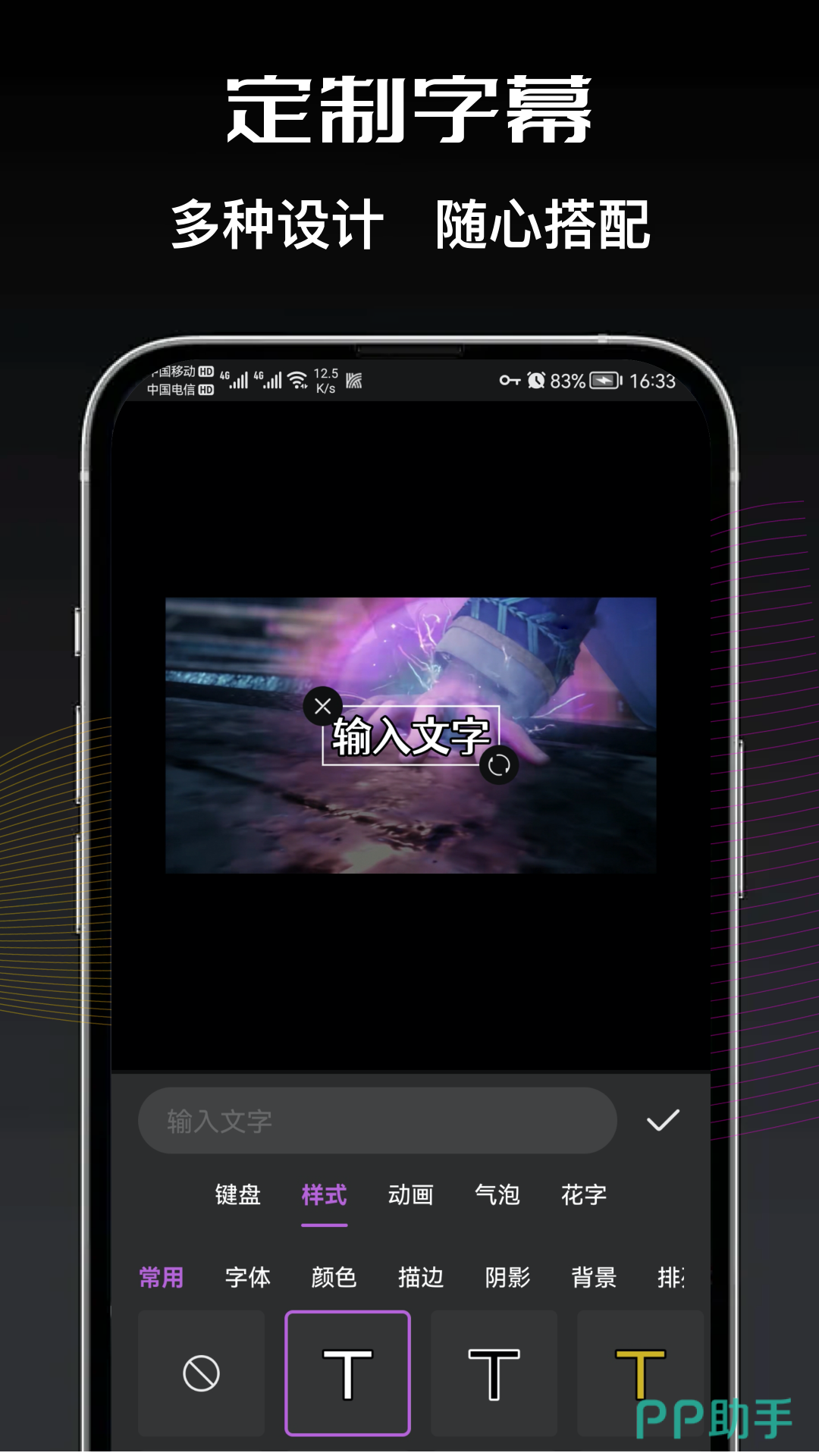 大家可以用它自定义视频上的字幕,看着更有设计感,也能加入阴影描边等元素。此外也能根据视频内容一键成片,让你无需自己设计,更加便捷。