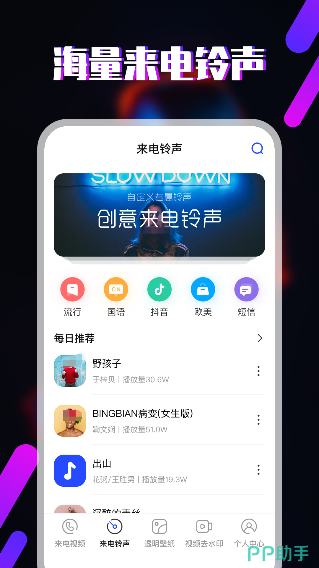热门的铃声和来电秀都能一键轻松设置,各种铃声资源都有,在其他平台当中找不到的铃声资源可以在这里直接搜索找到,很棒的动态来电秀能轻松设置,透明潮流壁纸也有。