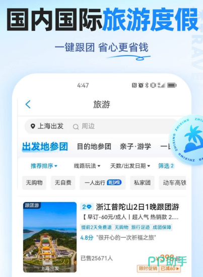 国内老牌旅游应用,让旅游更简单,其中的跟团游有较多特色,有特色餐饮系统以及高质量形成,轻松提升游客的跟团出游体验。用户可以自主定制多种出行方式,包括玩乐住宿等等,全方位满足多样化出游需求。