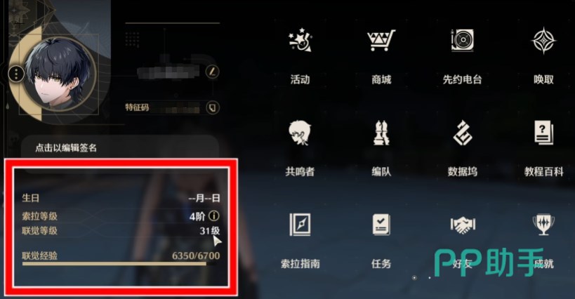 如图所示,在玩家个人终端里,有一个索拉等级和联觉等级,这里的索拉等级就是世界等级,当玩家的联觉等级是10的倍数时,相应的索拉等级就会提高1级。例如这里的联觉等级是31级,是10的3倍还多,所以索拉等级也就是世界等级会是3+1=4级,严格说是“4阶”。