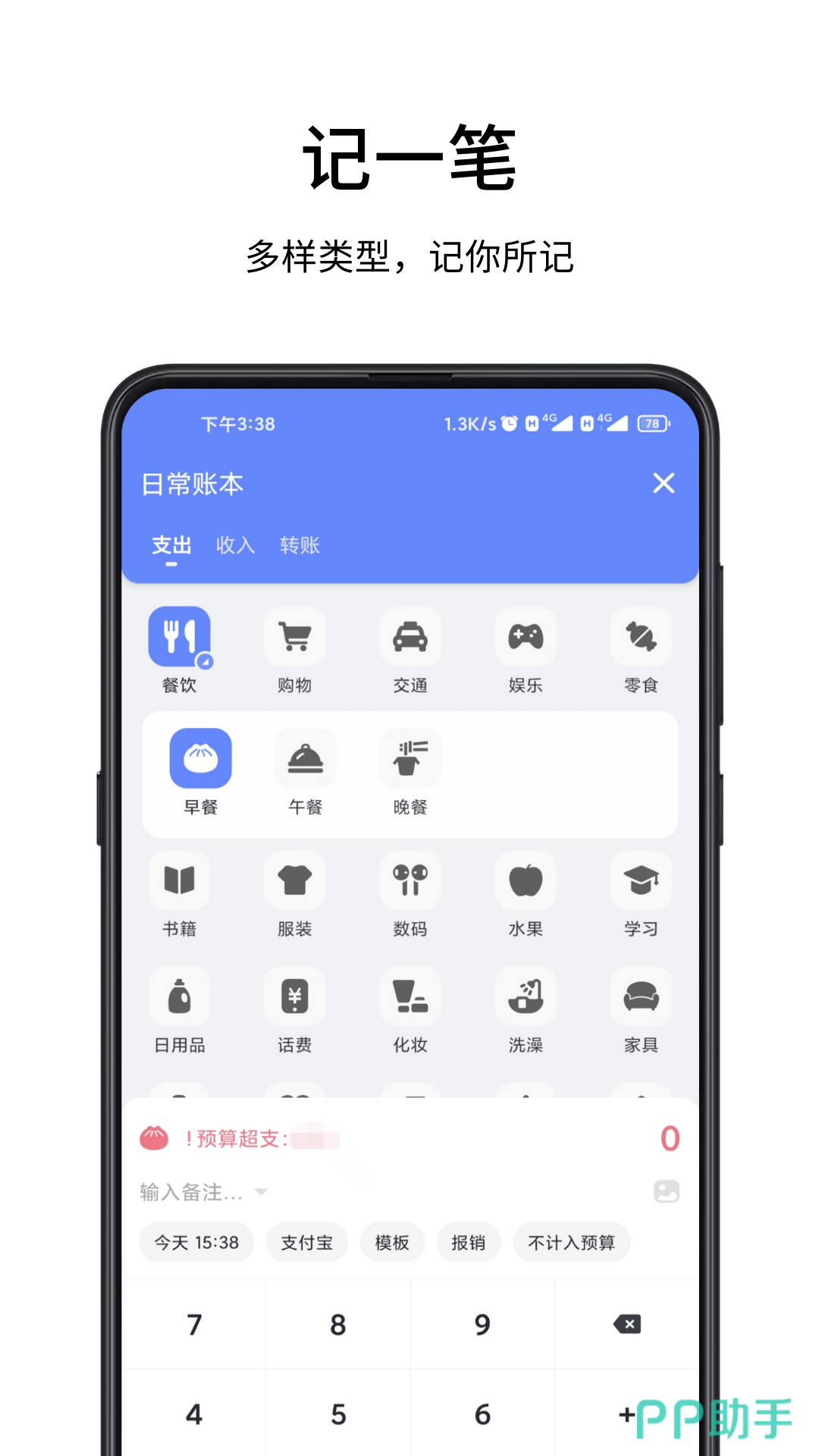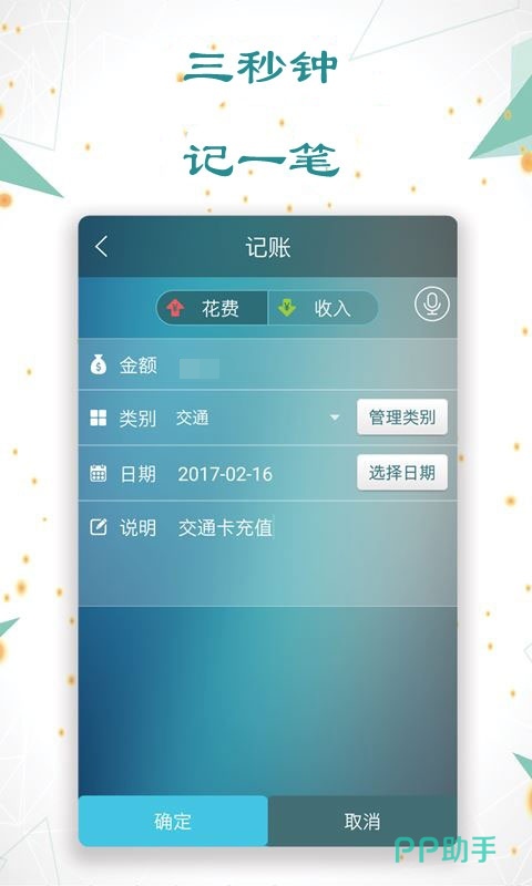 通过使用这个软件养成记账的好习惯,几秒钟的时间完成一次记账,折线图和扇形图等方式为大家呈现,点击选择消费场景再输入金额即可完成记账。