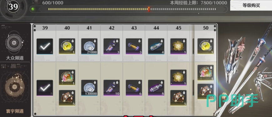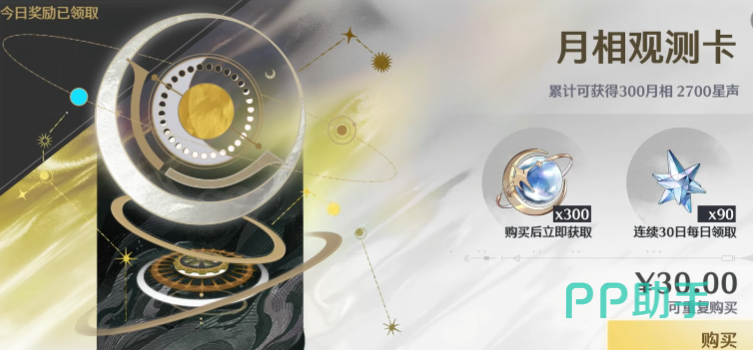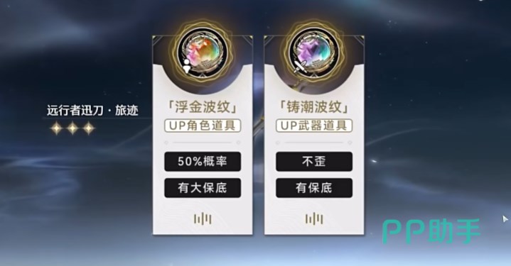 抽卡道具名为“星声”,日常最多60个,小月卡每天能有90个,160星声换1个“唤声涡纹”,涡纹可以抽常驻角色池和武器池,80抽保底,如果不氪金买月卡,抽到心仪角色的进度就会明显变慢,这个游戏里的常驻武器池可以定向,这点还是挺不错的。