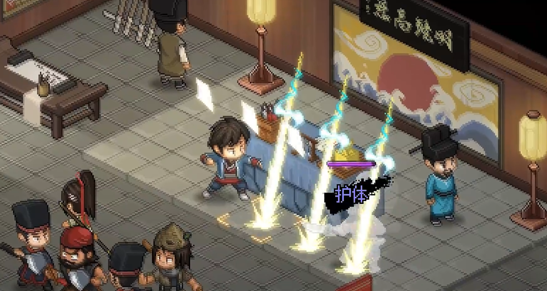 同时大家在于他对战前可以进行组队,搭配一些输出强的角色比如孔一刀或者是洛天雄,这两个角色的高输出能力可以帮助玩家快速消耗重阳子的血量,同时还能加入两个辅助角色比如说慧元和蔡元常,他们两个可以帮助角色免除伤害甚至复活。