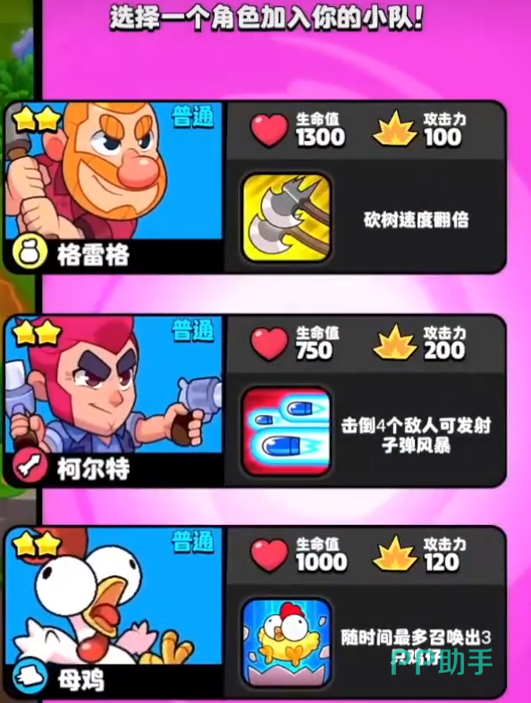 游戏一般的胜负是以玩家们收集的宝石数量为主。一进入游戏之后,我们首先需要在三位随机的角色之中选择一位来开启自己的游戏。之后便开启自由行动,前期我们是比较弱的,所以在选择人物的时候尽量选择攻击高或者对野生怪物有加成的角色。如果这位角色是一名远程攻击型角色的话,那么就更好了。
