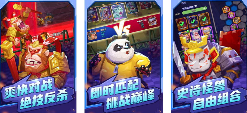 在六边形格子中,玩家单位移动己方,进行攻击和防御,策略性较强,并且有极强的轮盘其风格。英雄系统比较完善,不仅有孙悟空和功夫熊猫等角色,还有小魔女等新英雄齐齐上阵,卡牌选择多多,并且养成速度较为短暂。在PVP模式中,玩家及时匹配,在回合制中与各种怪兽进行对战,利用战棋的策略消灭敌人。