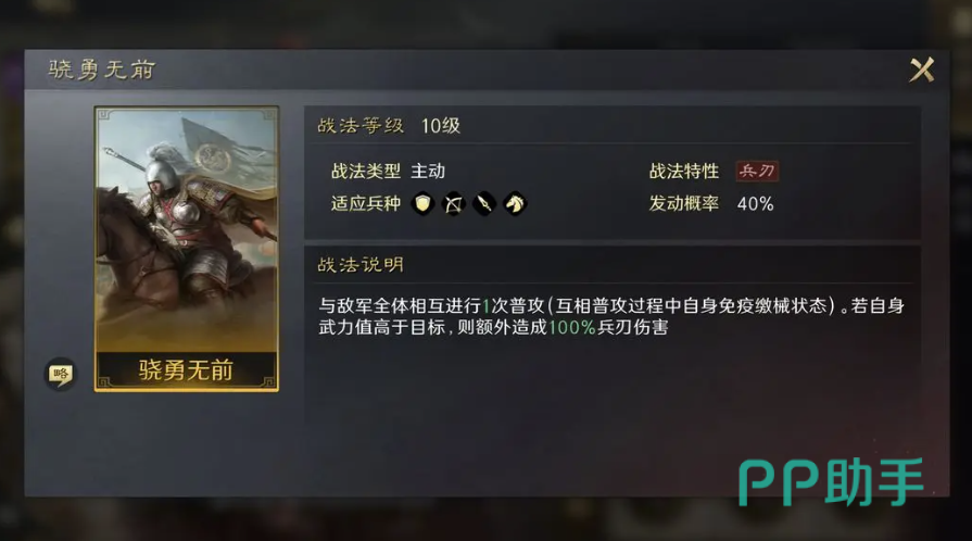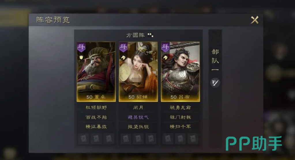 在这个组队当中吕布的武力成长很高,骁勇无前这个群体攻击技能可以跟地方进行普通攻击,如果武力高于对面的话就可以对其造成额外的兵刃伤害,搭配辕门射戟之后利用普攻对敌人造成高额度伤害,同时战法的发动率也会被提升。