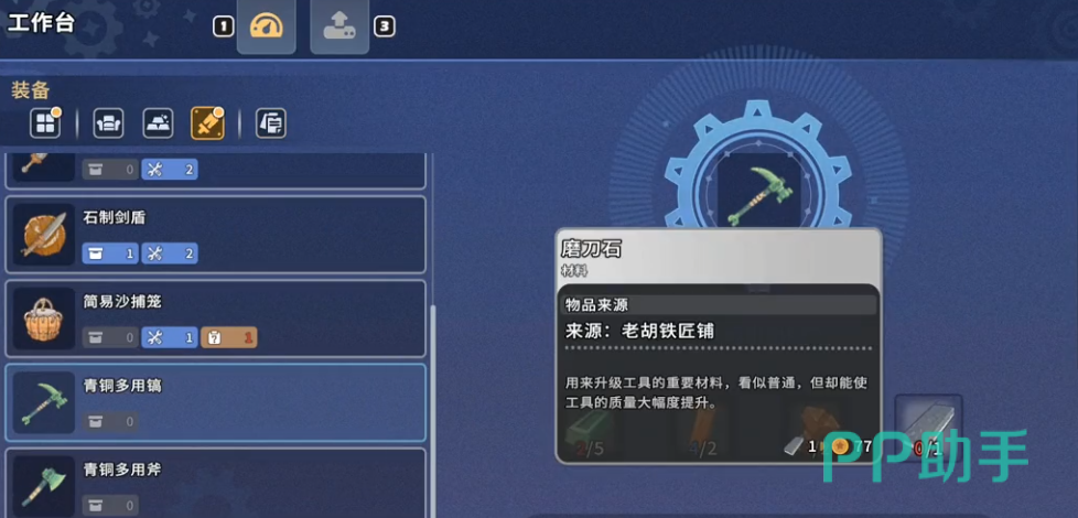 将原材料合成拿到青铜锭后就可以给予NPC点击升级按钮进行升级,当然如果角色升级很麻烦也有第二种方法可以拿到斧头,我们可以先找到工坊主米安,跟随她前往沙石镇的商会与老工坊主和商会会长见面。