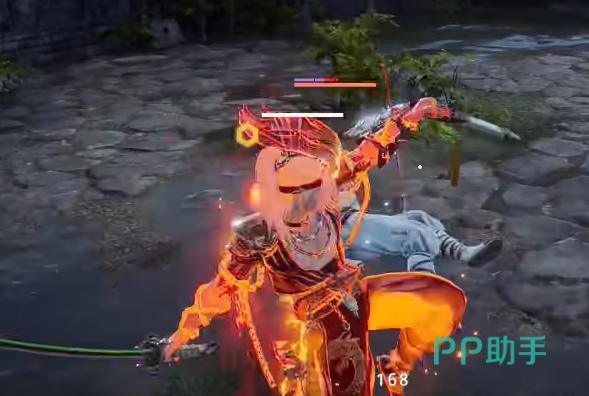 这个时候大家需要趁着对手无法行动时给到对手一个蓄力重攻击,打完后这火球操作就完成了。这一套打下来火球接重攻击是可以给到对手相当恐怖的伤害,这个伤害会随着武器产生变化,武器越好,伤害就越高,理论上大家有金武的情况下,这套打下来秒个紫甲是没问题的。