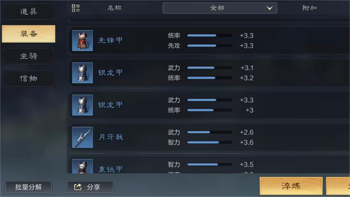 通过消耗铁英砂,玩家可以随机增加或减少装备的属性值,但不会改变装备的基本属性类型。这意味着玩家可以通过淬炼,尽可能地提升装备的属性值,使其更加贴合武将的需求。消耗点化石后,玩家可以重新随机生成装备的特技和特效,甚至有可能增加特技和特效的数量。这为玩家提供了更多的自定义选项,使他们能够根据战斗策略调整装备的被动效果。