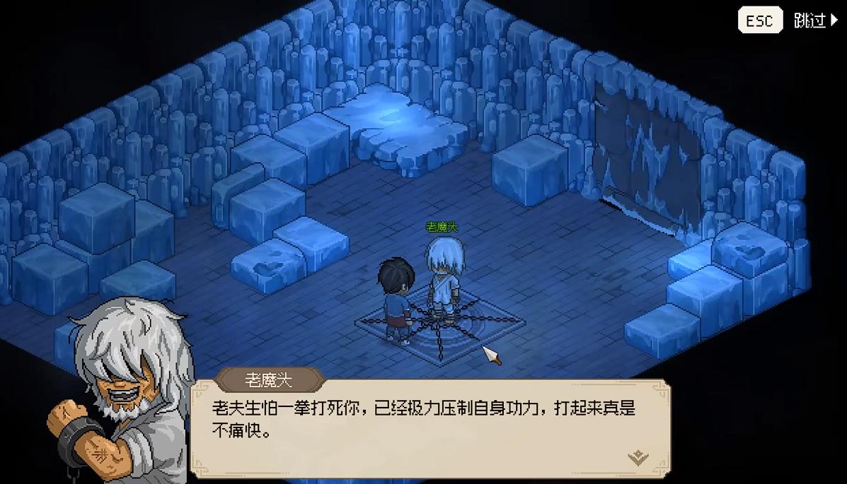 第一次击败楚狂生后,玩家可等待他平复自己的气息,同时使用上方的冰床进行修炼,直至无法继续使用后,便会进行下一阶段剧情。此时玩家若选袖手旁观,那楚狂生会直接爆体而亡,救人任务失败。若是选择助他平息真气,则会进入第二阶段的战斗。
