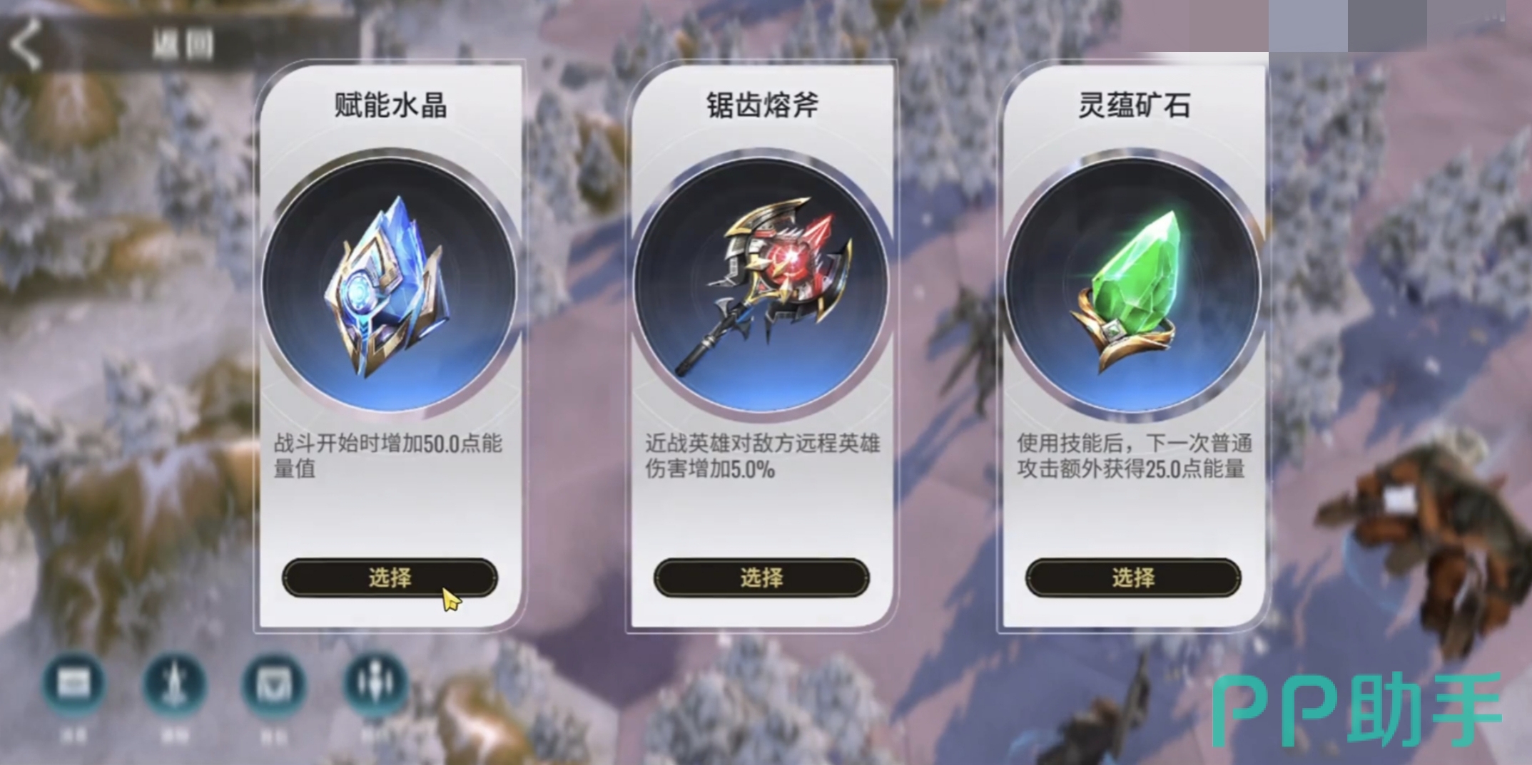 我们先依照正常流程选择适合的角色上场,对于角色的选择没有太多顾忌,带够输出就可以,基本能够做到无脑选。开局先选择加能量值的buff卡牌,以便一上场就能保证所有角色都能开出大招。防御力和回复能量这些先不用管,因为刚上场就放大招相当于可以免费打一波技能伤害,怎么看都是不亏。