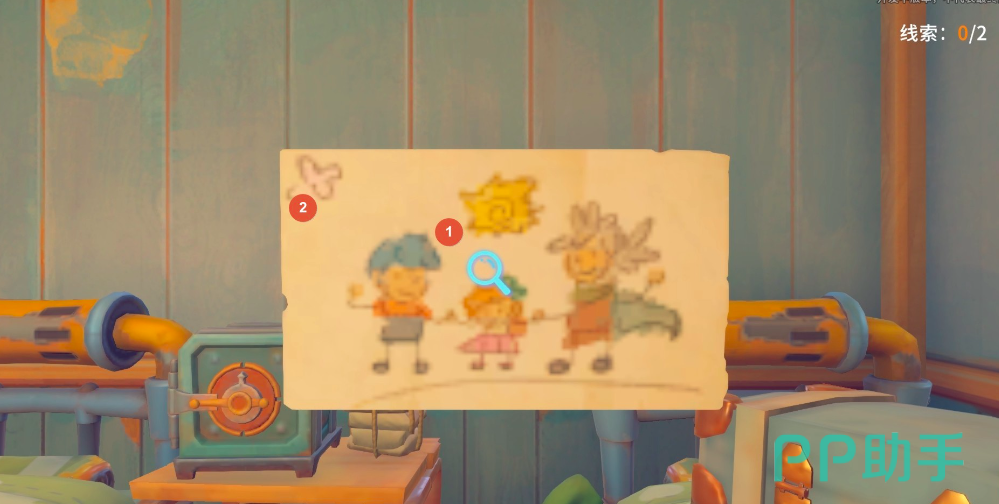 然后就是要前往发明桌了,发明桌的盘子里以及一本书和右边的三个罐子都是需要调查的对象,通过调查这些物品就可以获得三条线索。