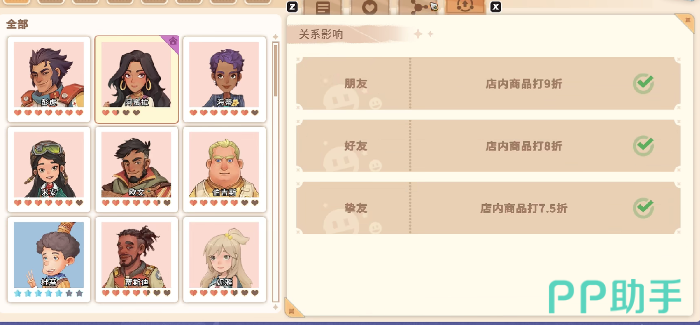 以上就是本期小编给大家带来的沙石镇时光阿蜜拉玩耍攻略的全部内容了,当玩家和阿蜜拉建立起亲密关系后,可以通过交互和交流来获得对方的亲密值,再通过亲密值的增加获得更多的礼物和道具,不仅如此,游戏内置阿蜜拉情侣支线任务,玩家可以沉浸式的体验到和阿蜜拉谈恋爱的快乐哦!