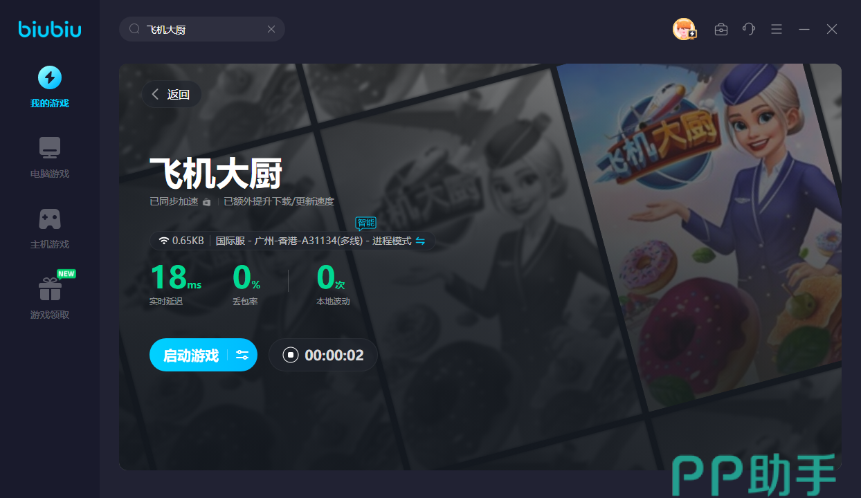 由于飞机大厨PC端目前仍旧未有国服,若是想进入不同区服的飞机里。就要使用biubiu,加速之后才能有打开飞机的大门,让你有资格成为一名厨师。新用户的话可领取24H的免费加速,此外新老用户均可使用【biubiu不卡顿】,就能领取三天免费加速。让你的大厨之旅可以走得愈来愈远,而不是中途坠机。烹饪的过程中网络一卡的话,就会弄错配方,制作出错的食物。有了加速器后,就能放心地调制各种美食,让你爱上厨房,并提升自己的厨艺。